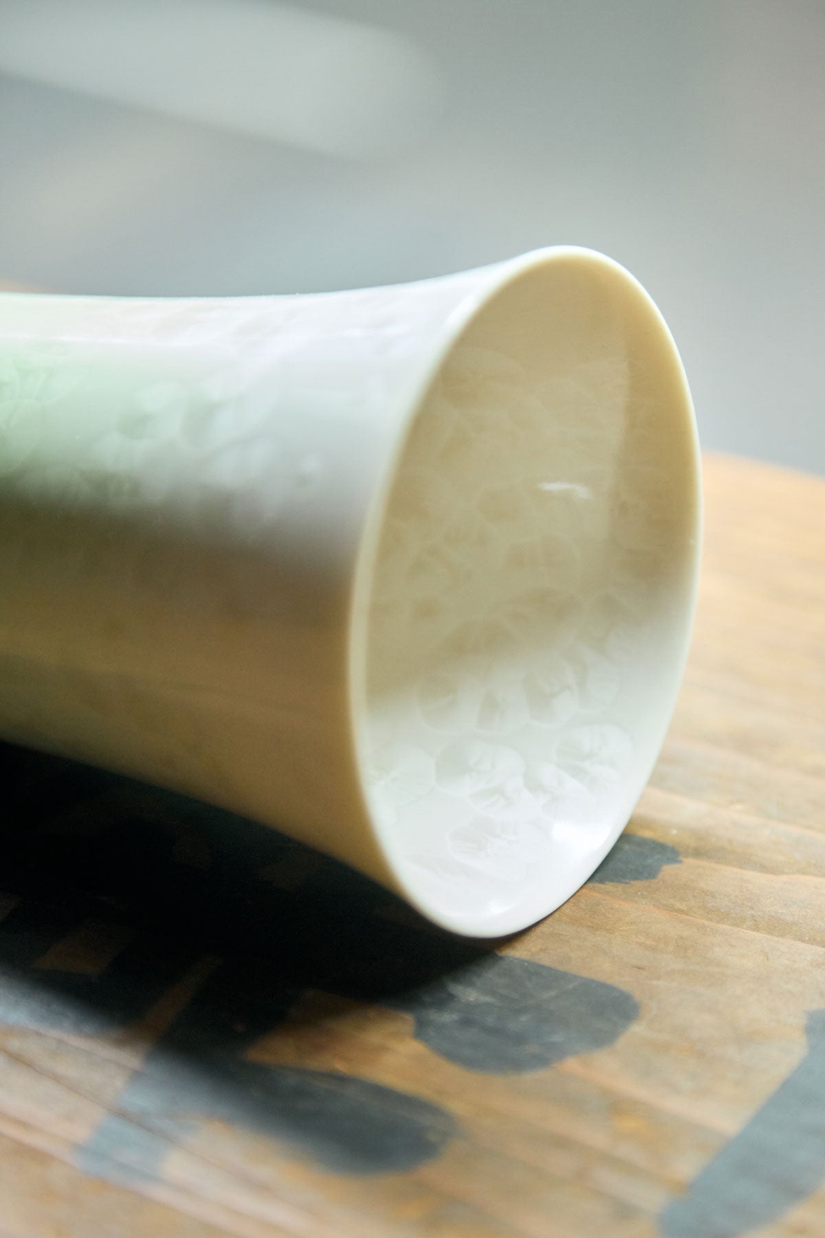 Zinc Oxide contained in this special glaze creates a snowflake like pattern as the glaze melts and cools down on the surface of Kumagai porcelain.